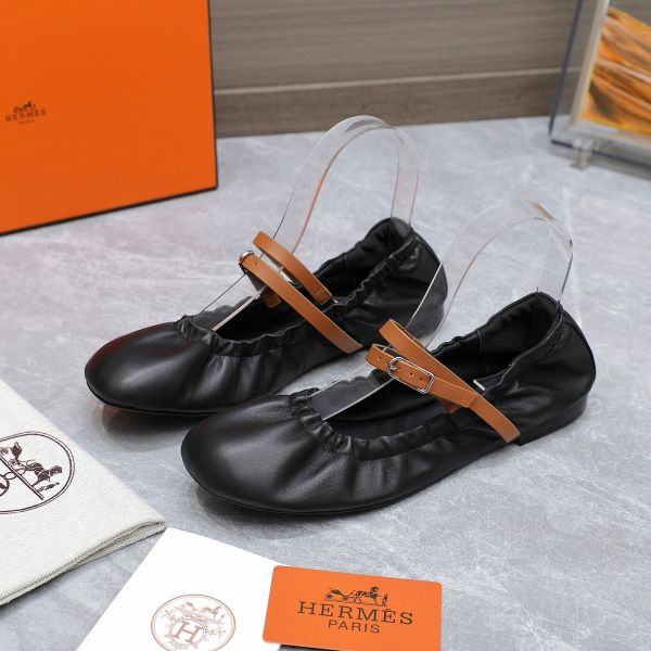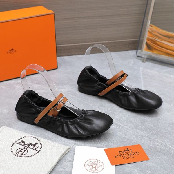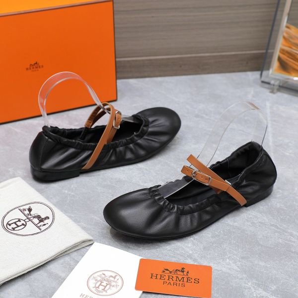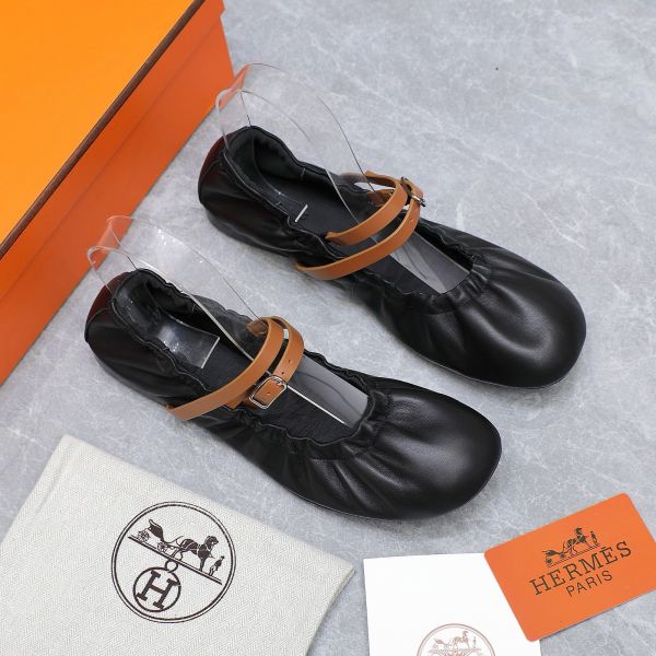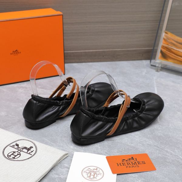 Hermes Jolly Ballet Flats in Black Nappa Leather