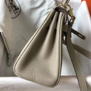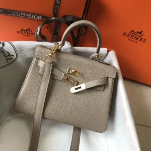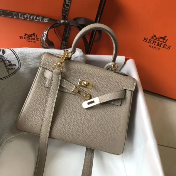 Hermes Kelly 20cm Bag In Grey Clemence Leather GHW