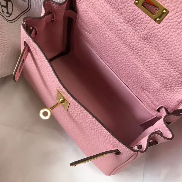 Hermes Kelly 20cm Bag In Pink Clemence Leather GHW