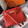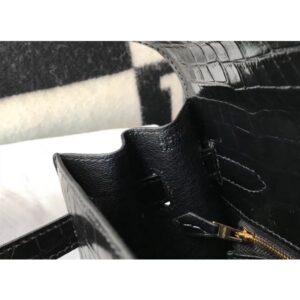 Hermes Kelly 25cm Handmade Bag In Black Embossed Crocodile Leather