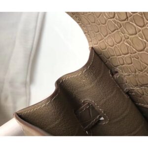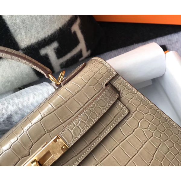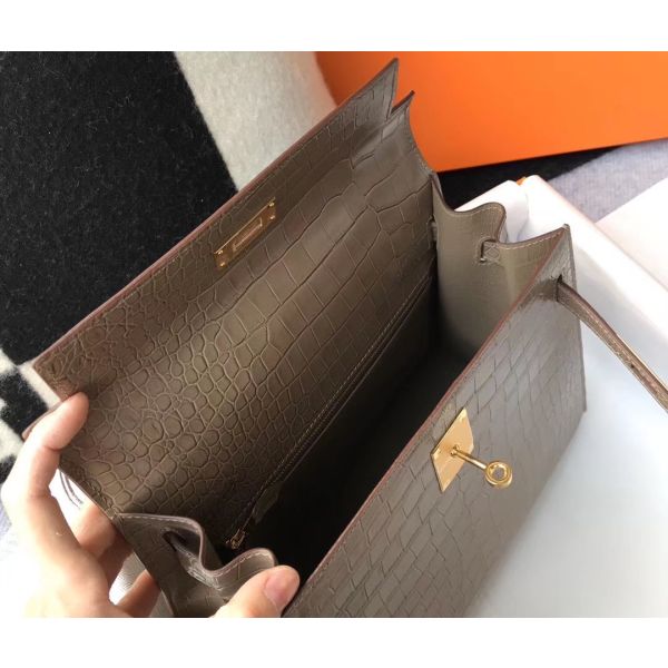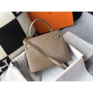 Hermes Kelly 25cm Handmade Bag In Taupe Embossed Crocodile Leather
