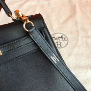 Hermes Kelly 25cm Retourne Handmade Bag In Black Swift Leather