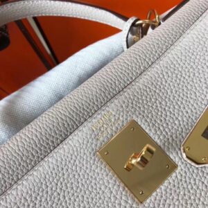 Hermes Kelly 32cm Bag In Pearl Grey Clemence Leather GHW