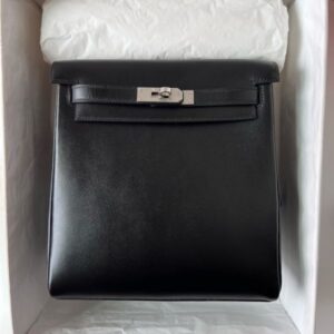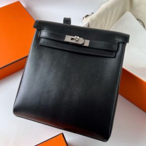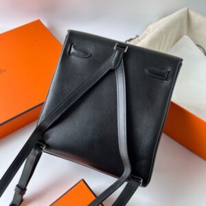 Hermes Kelly Ado Backpack in Black Box Calf Leather