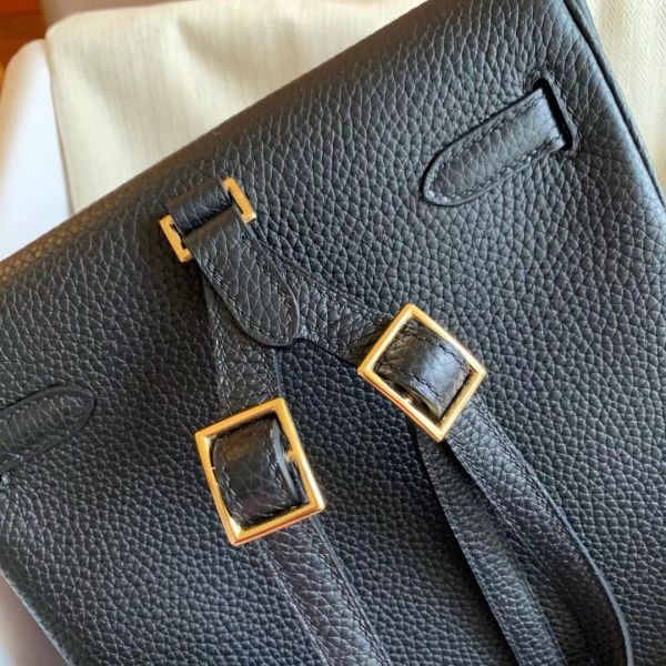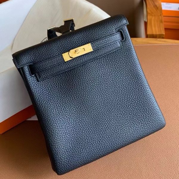 Hermes Kelly Ado Backpack in Black Clemence Leather