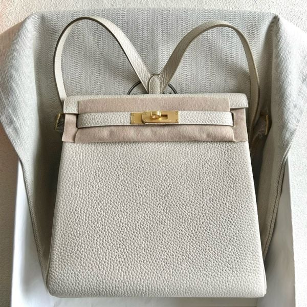 Hermes Kelly Ado Backpack in Craie Clemence Leather