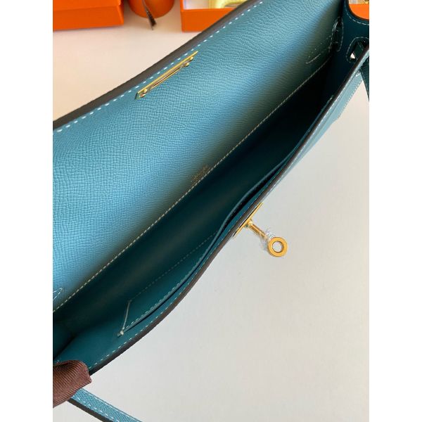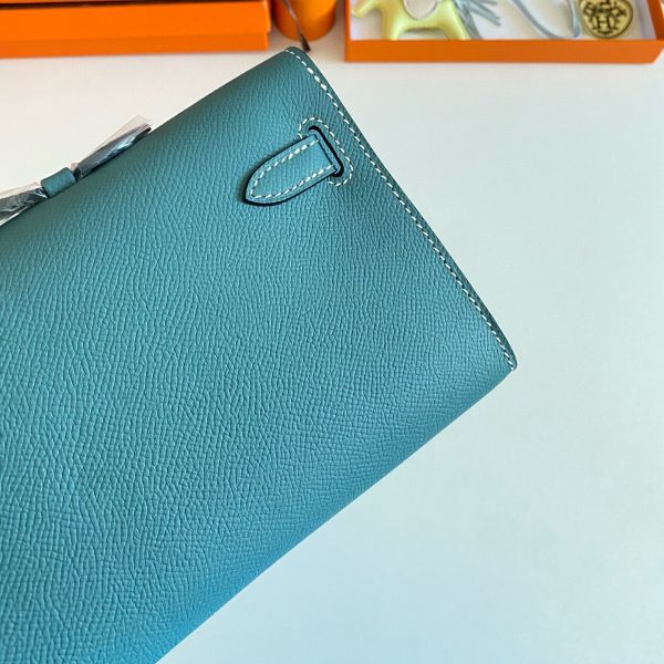 Hermes Kelly Pochette Handmade Bag In Vert Criquet Epsom Calfskin