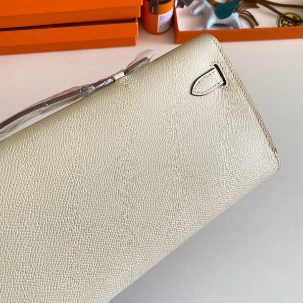 Hermes Kelly Pochette Handmade Bag In Vert Criquet Epsom Calfskin