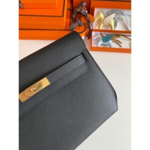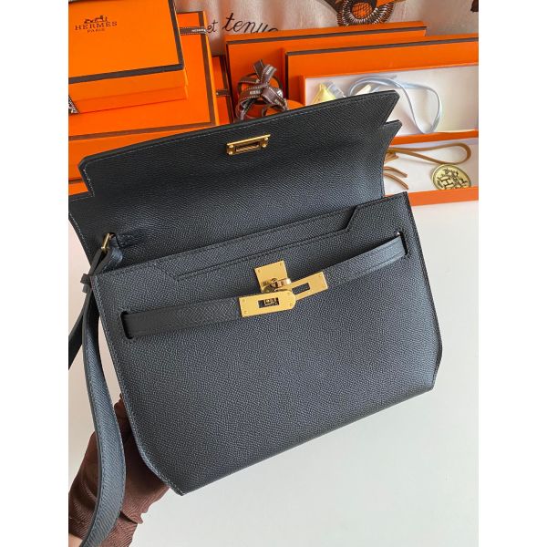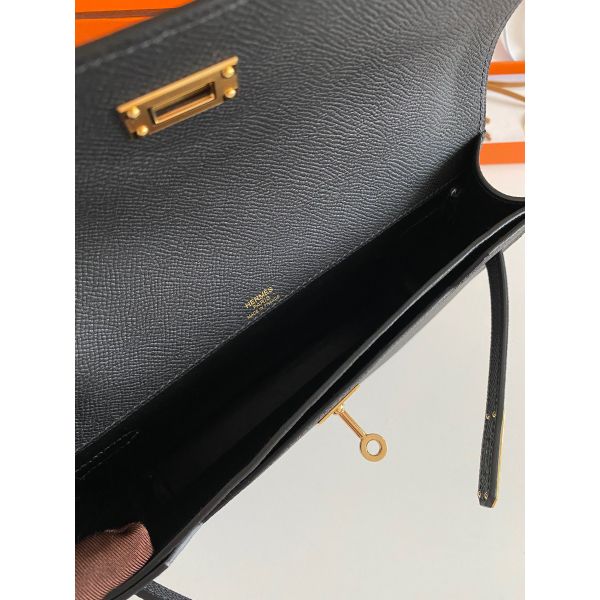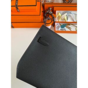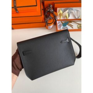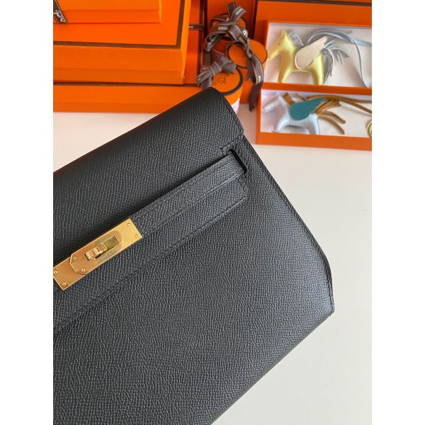 Hermes Kelly Depeches 25 Pouch in Black Epsom Calfskin