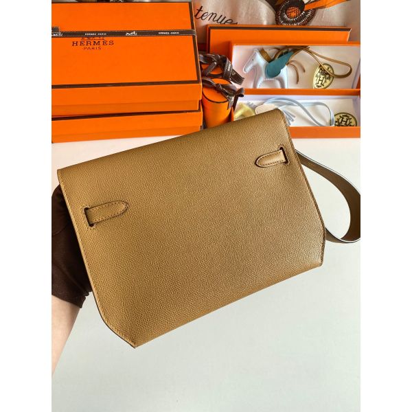 Hermes Kelly Depeches 25 Pouch in Sesame Epsom Calfskin