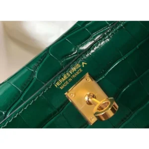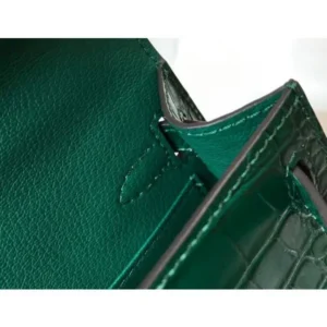 Hermes Kelly Mini II Bag In Green Embossed Crocodile Leather