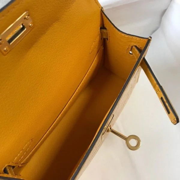 Hermes Kelly Mini II Bag In Yellow Embossed Crocodile Leather