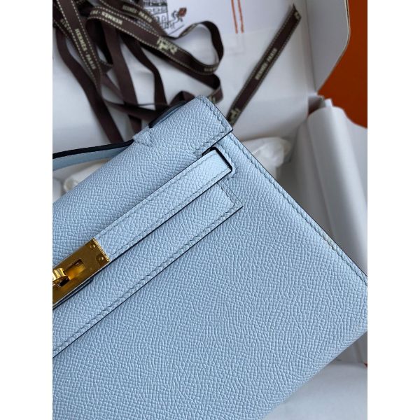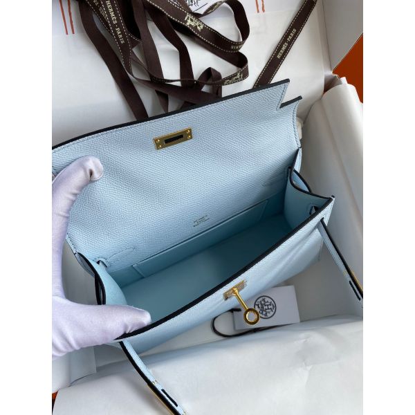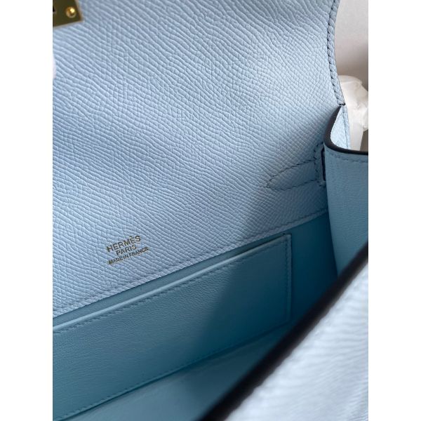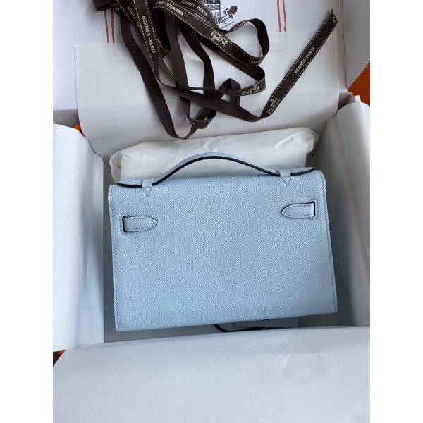 Hermes Kelly Pochette Handmade Bag In Blue Brume Epsom Calfskin