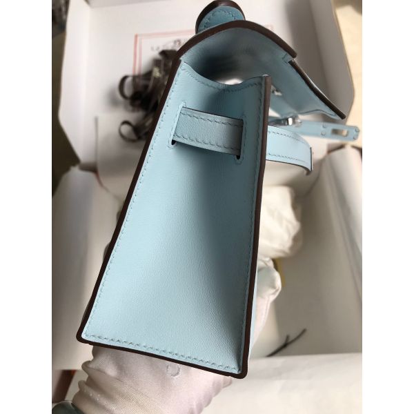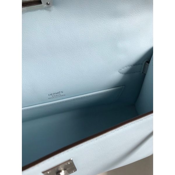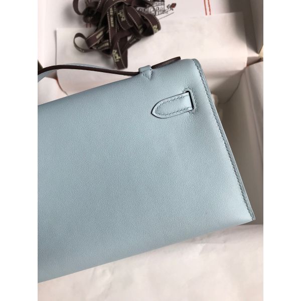 Hermes Kelly Pochette Handmade Bag In Blue Brume Swift Calfskin