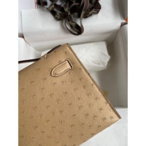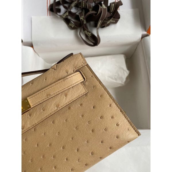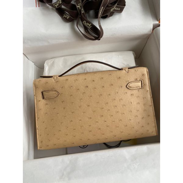 Hermes Kelly Pochette Handmade Bag In Chai Ostrich Leather
