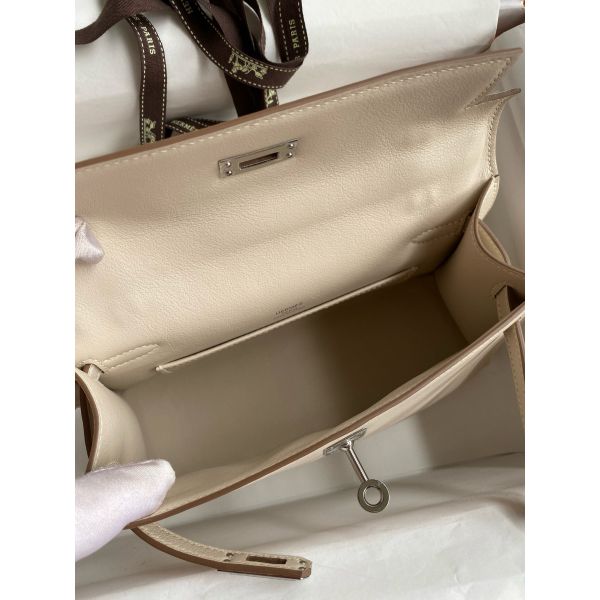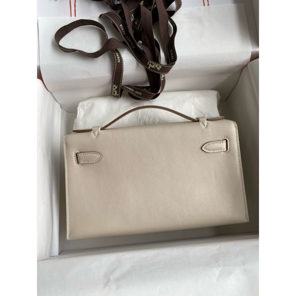 Hermes Kelly Pochette Handmade Bag In Craie Swift Calfskin