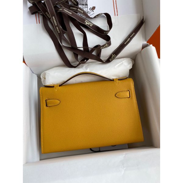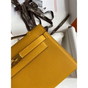 Hermes Kelly Pochette Handmade Bag In Jaune Ambre Epsom Calfskin