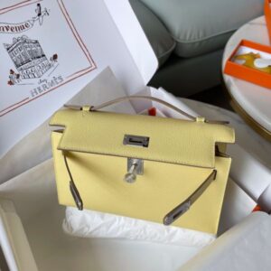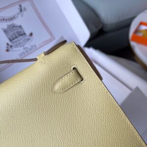 Hermes Kelly Pochette Handmade Bag In Jaune Poussin Epsom Calfskin