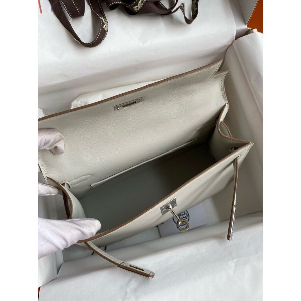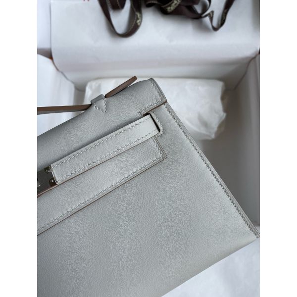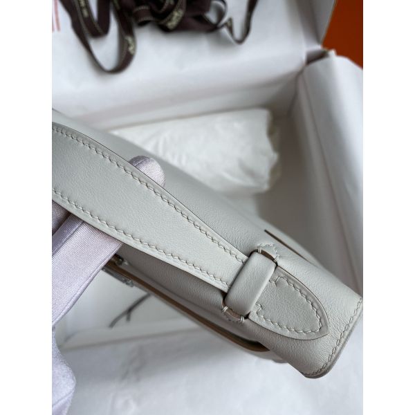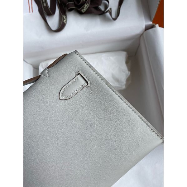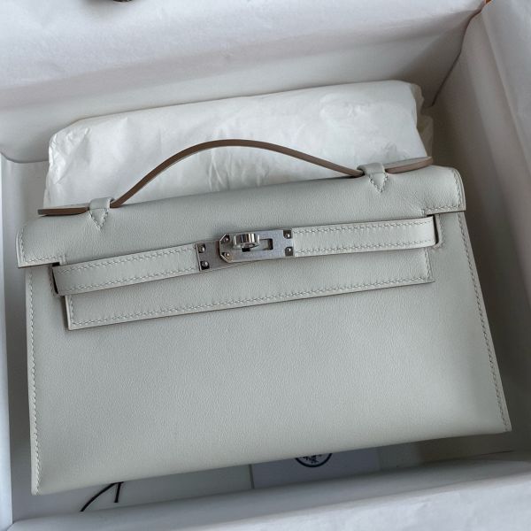 Hermes Kelly Pochette Handmade Bag In Pearl Grey Swift Calfskin
