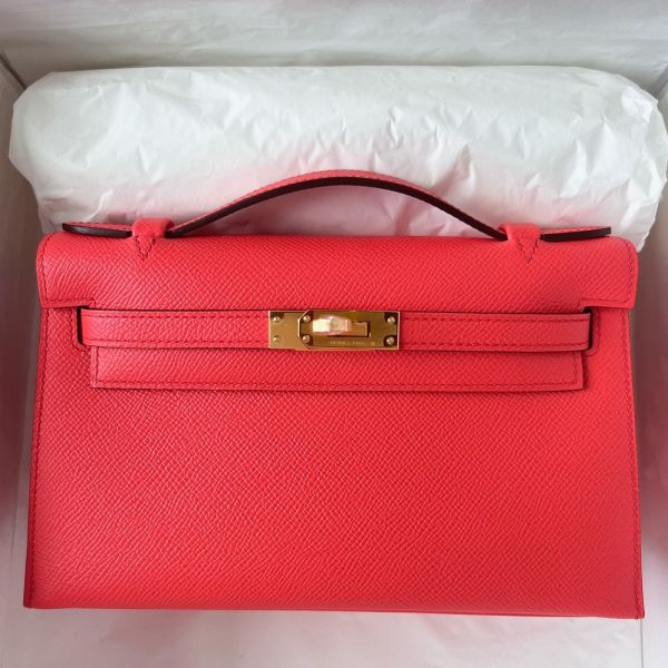 Hermes Kelly Pochette Handmade Bag In Rose Texas Epsom Calfskin