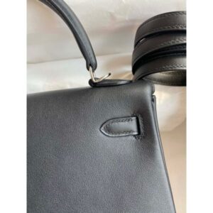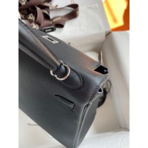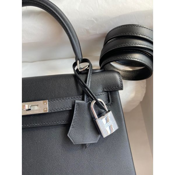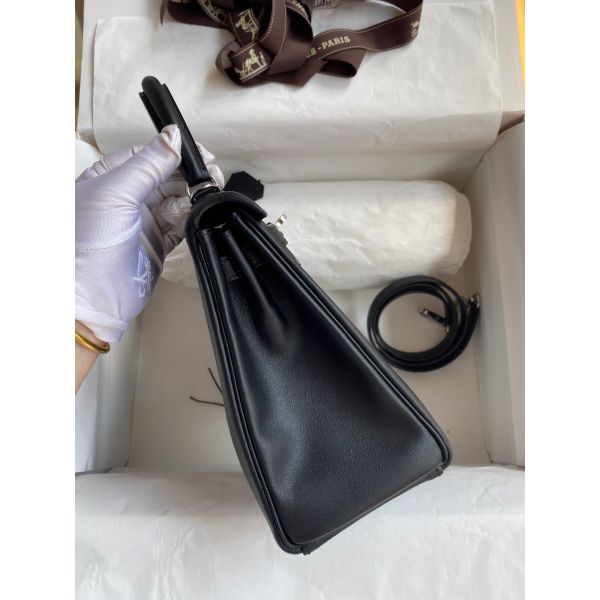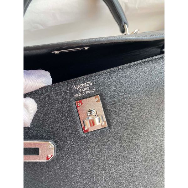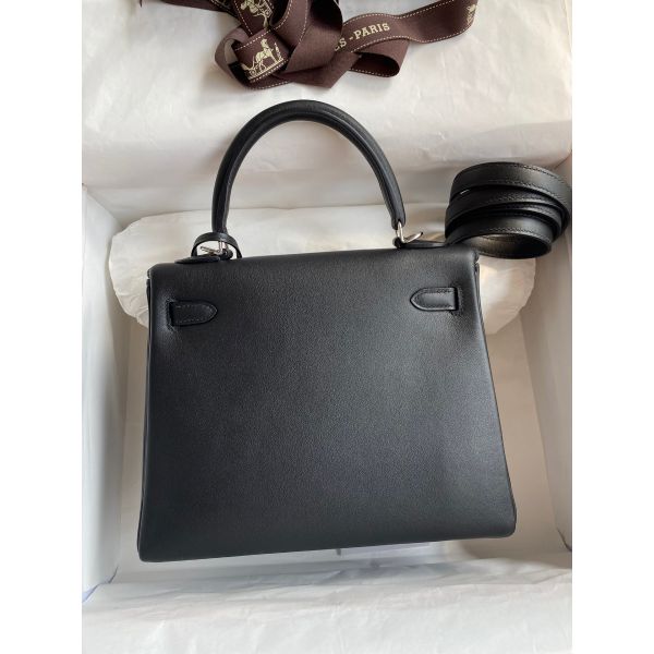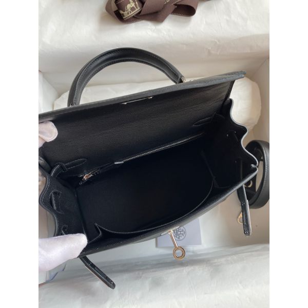 Hermes Kelly Retourne 25 Handmade Bag In Black Swift Calfskin
