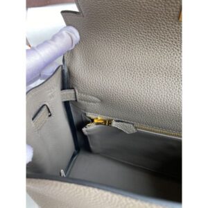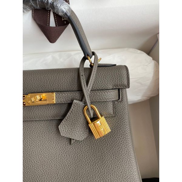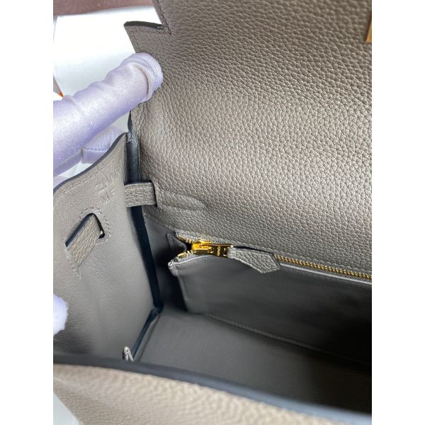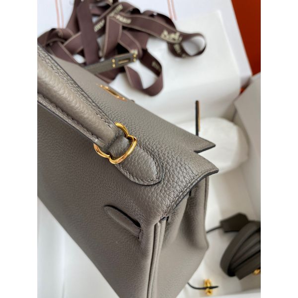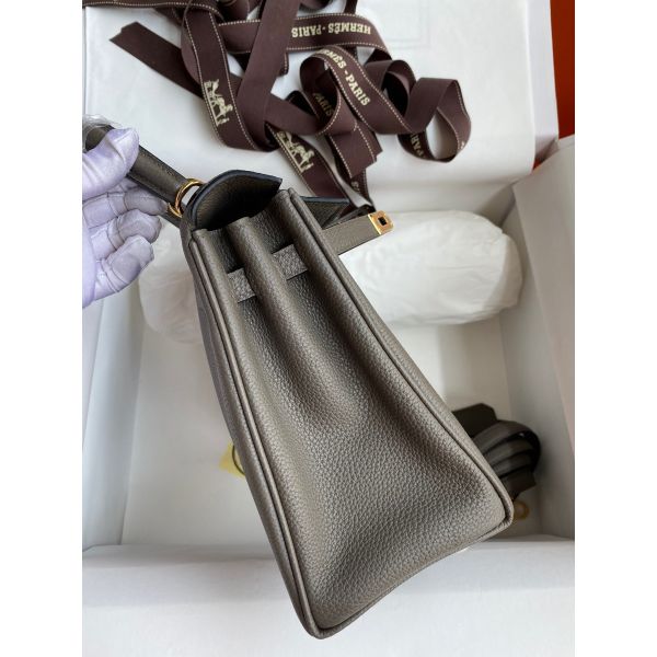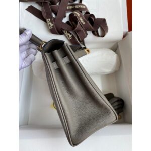 Hermes Kelly Retourne 25 Handmade Bag In Etain Clemence Leather