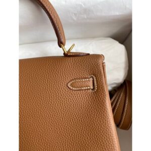 Hermes Kelly Retourne 25 Handmade Bag In Gold Clemence Leather
