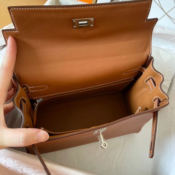 Hermes Kelly Retourne 25 Handmade Bag In Gold Swift Calfskin