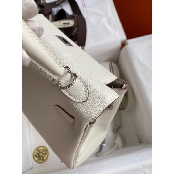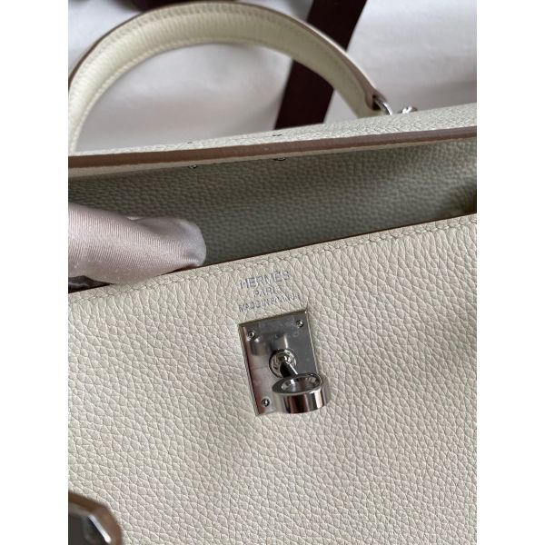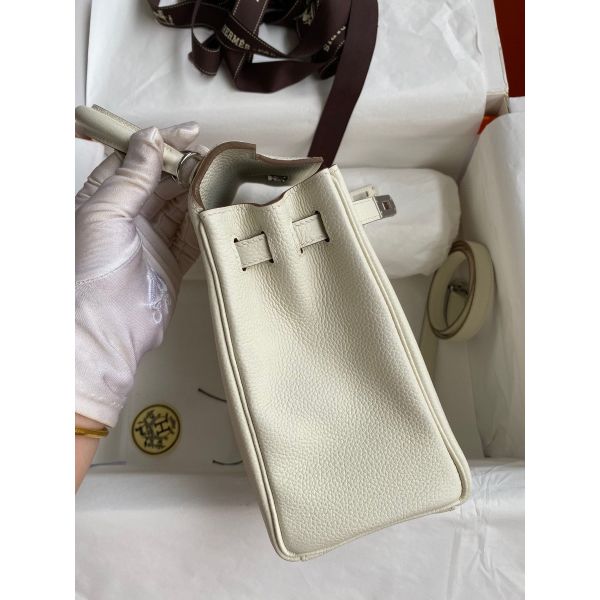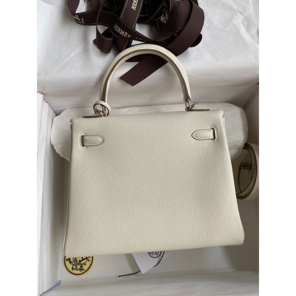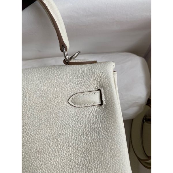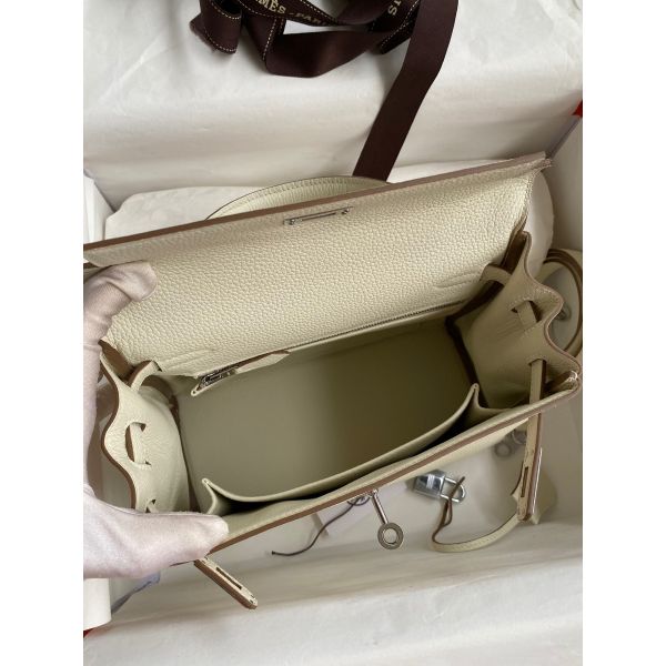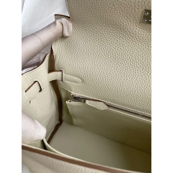 Hermes Kelly Retourne 25 Handmade Bag In Mushroom Clemence Leather