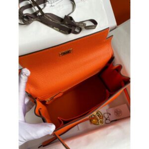 Hermes Kelly Retourne 25 Handmade Bag In Orange Clemence Leather