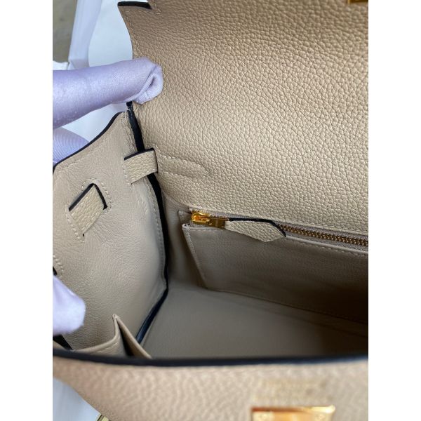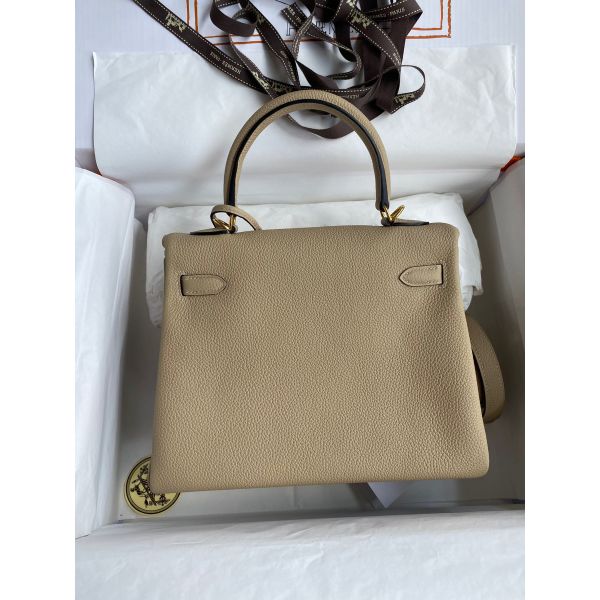 Hermes Kelly Retourne 25 Handmade Bag In Trench Clemence Leather
