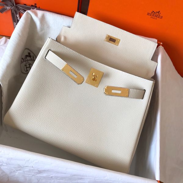 Hermes Kelly Retourne 28 Handmade Bag In Craie Clemence Leather