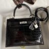 Hermes Kelly Retourne 28 Handmade Bag In Malachite Clemence Leather