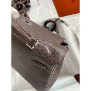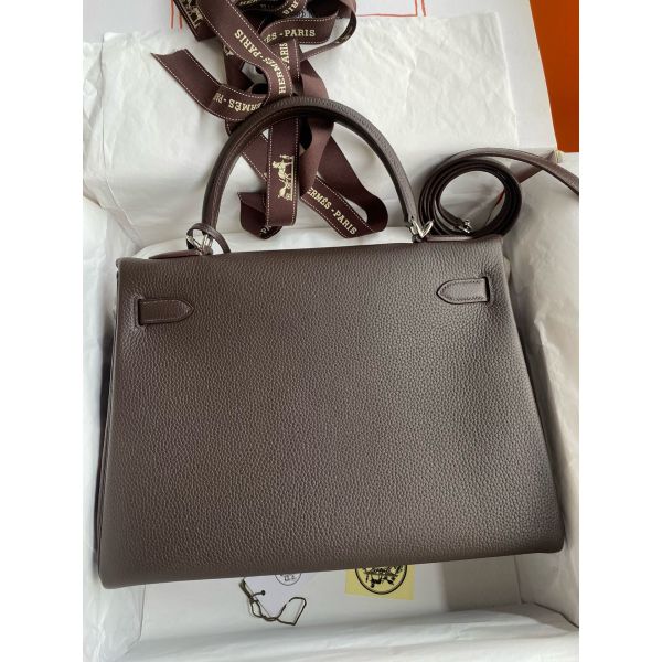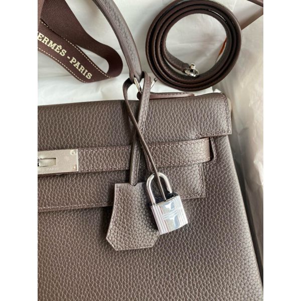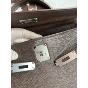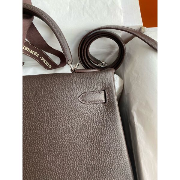 Hermes Kelly Retourne 32 Handmade Bag in Chocolat Clemence Leather