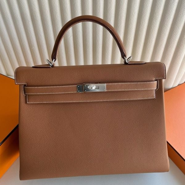 Hermes Kelly Retourne 35 Handmade Bag in Gold Clemence Leather