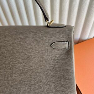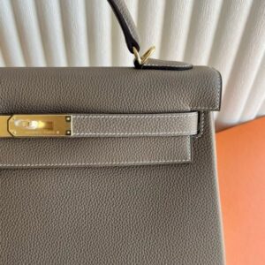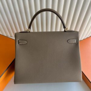 Hermes Kelly Retourne 35 Handmade Bag in Taupe Clemence Leather