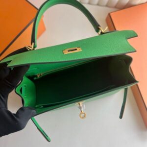 Hermes Kelly Sellier 25 Handmade Bag in Cactus Epsom Calfskin