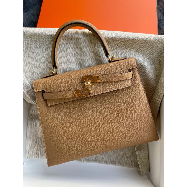 Hermes Kelly Sellier 25 Handmade Bag In Chai Epsom Calfskin