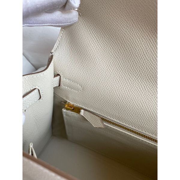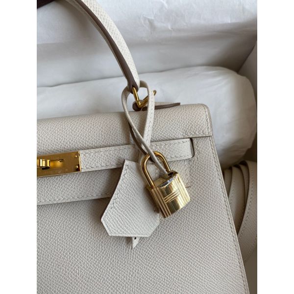 Hermes Kelly Sellier 25 Handmade Bag In Craie Epsom Calfskin