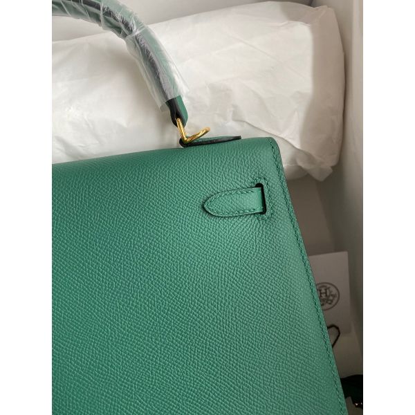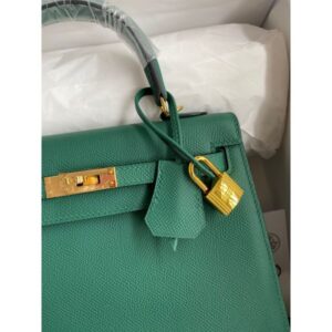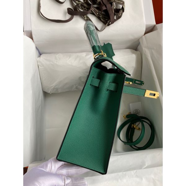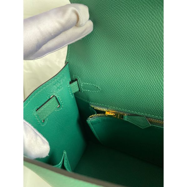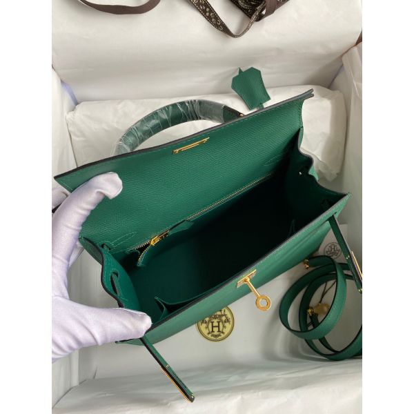 Hermes Kelly Sellier 25 Handmade Bag In Malachite Epsom Calfskin