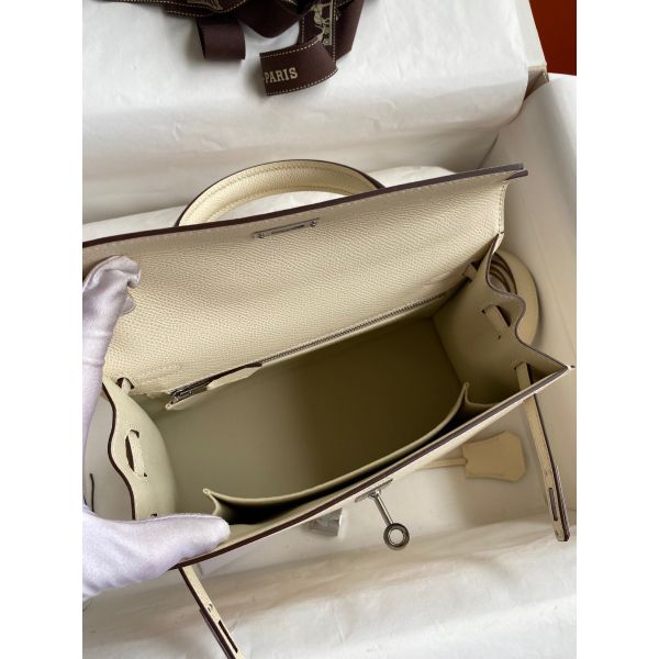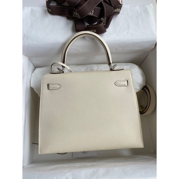 Hermes Kelly Sellier 25 Handmade Bag In Nata Epsom Calfskin