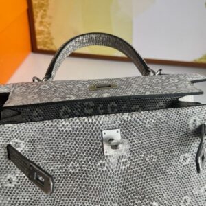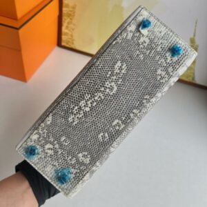 Grace Kelly who used this bag to conceal her pregnancy from the nosy paparazzi, since then the Kelly bag was officially named after her. A very uncommon model – the size 25 cm is just a little smaller than the K28 and is the perfect alternative for rather smaller women. This Lizard skin is extremely valuable and rare and is processed as little as possible to maintain its natural texture.