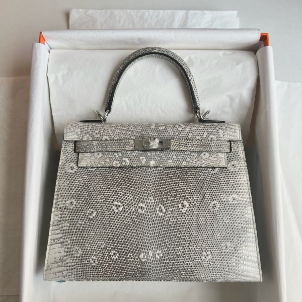 Hermes Kelly Sellier 25 Handmade Bag in Natural Lizard Skin