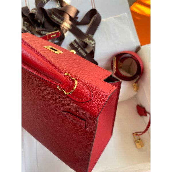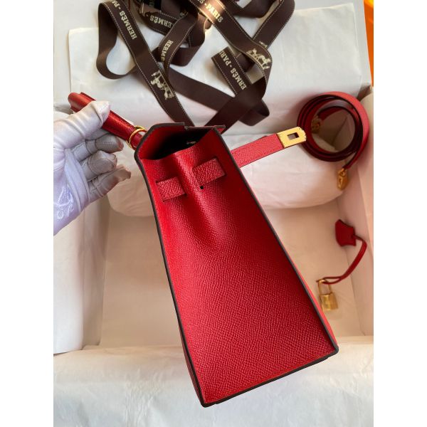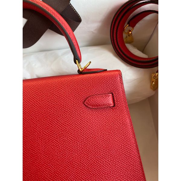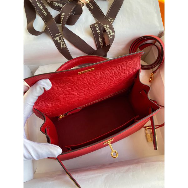 Hermes Kelly Sellier 25 Handmade Bag In Red Epsom Calfskin
