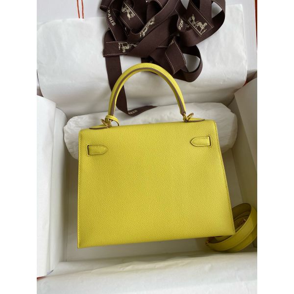 Hermes Kelly Sellier 28 Handmade Bag In Lime Epsom Calfskin