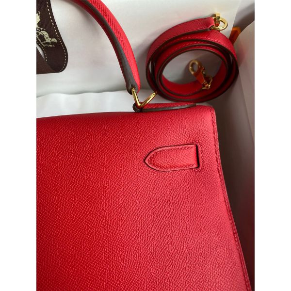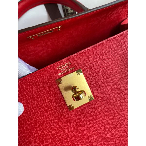 Hermes Kelly Sellier 28 Handmade Bag In Red Epsom Calfskin