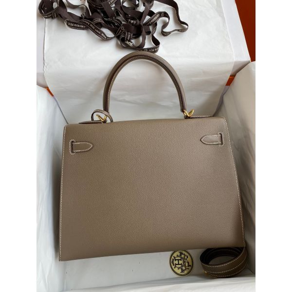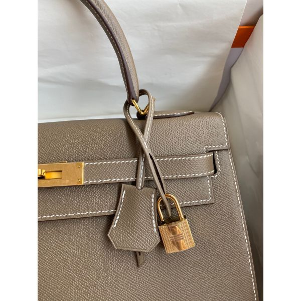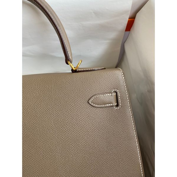 Hermes Kelly Sellier 32 Handmade Bag In Taupe Epsom Calfskin