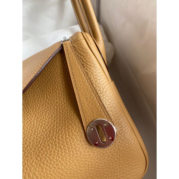 Hermes Lindy 26 Handmade Bag In Biscuit Clemence Leather