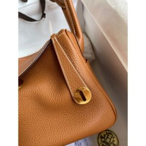 Hermes Lindy 26 Handmade Bag In Gold Clemence Leather