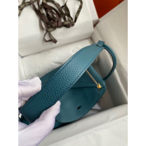 Hermes Lindy 26 Handmade Bag In Vert Bosphore Clemence Leather
